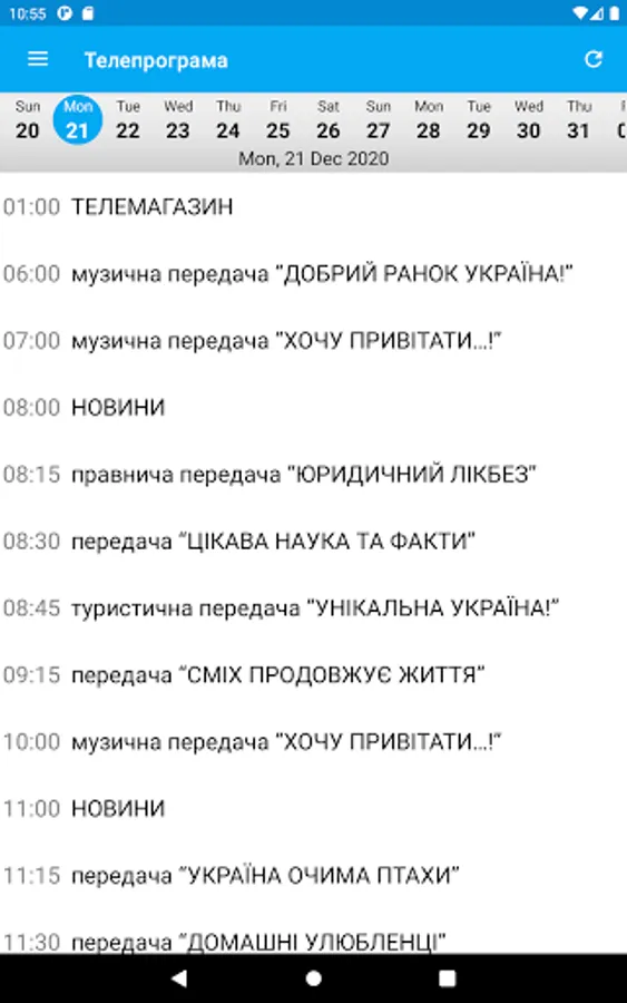TNB is a simple and clear interface, the ability to create reminders about the start of the transfer, instant search by channels and switch to the author's channel, convenient navigation in full screen mode.