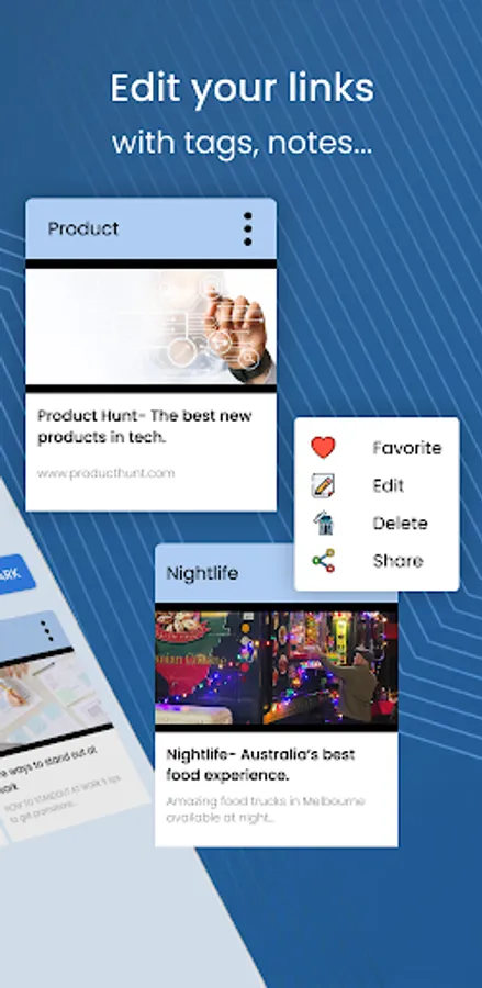 • With LinkBucket, you can easily manage your links by editing, moving, or adding notes to them.