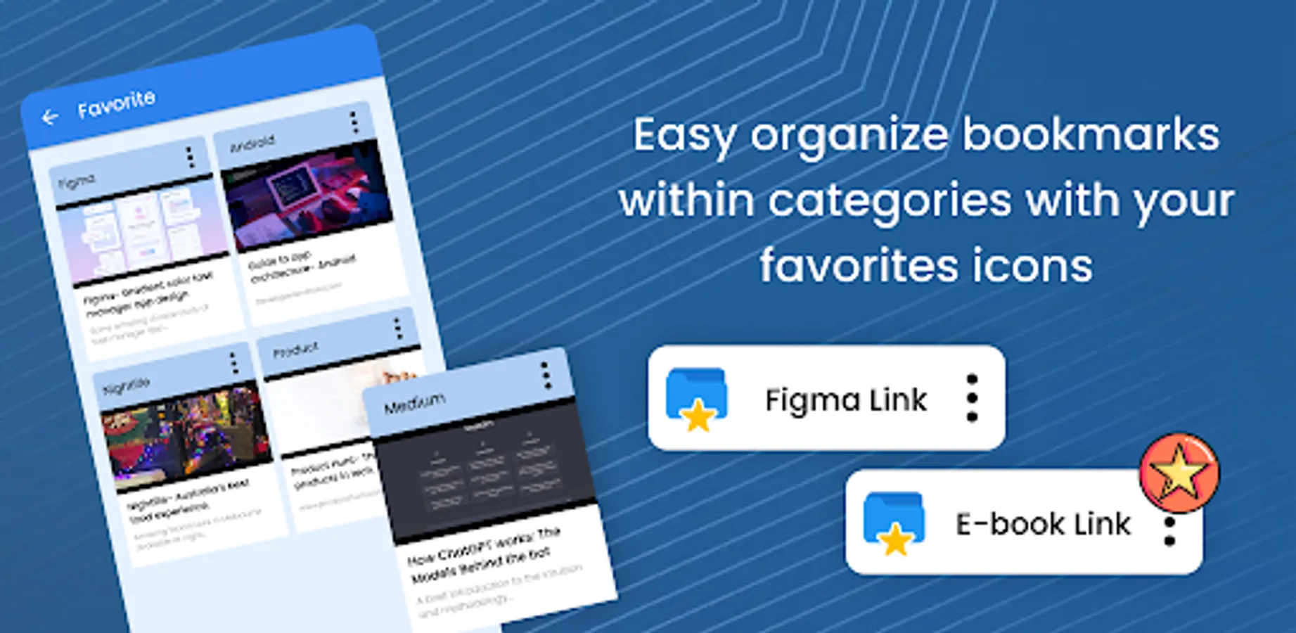 • Organize your bookmarks efficiently by creating categories and subcategories.