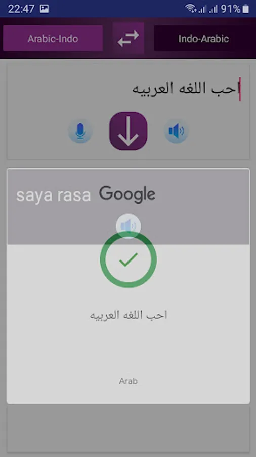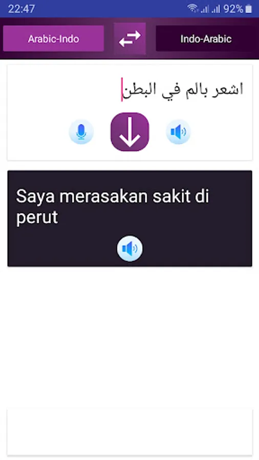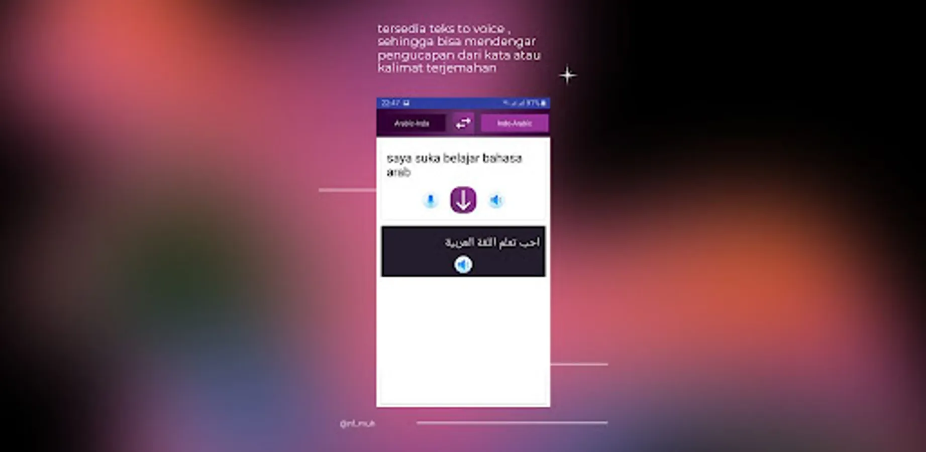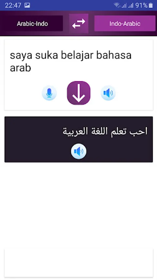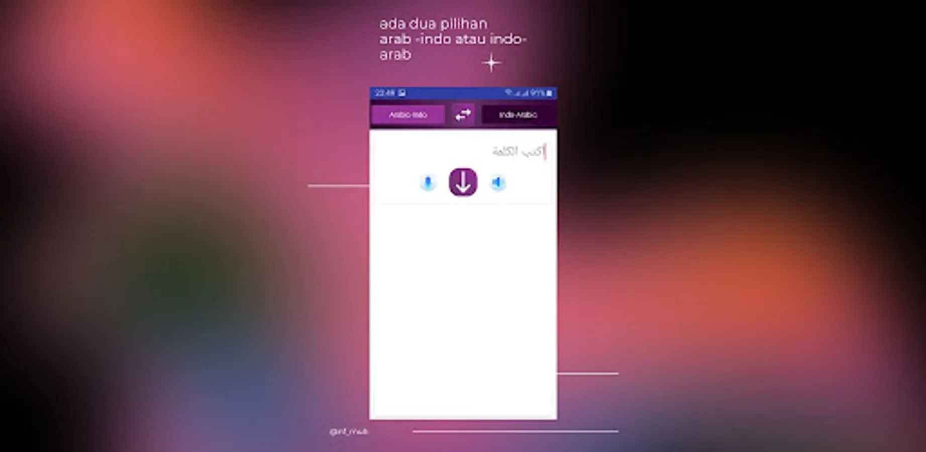 Aplikasi ini adalah Penerjemah kata atau kalimat dari bahasa indonesia ke bahasa arab atau sebaliknya,