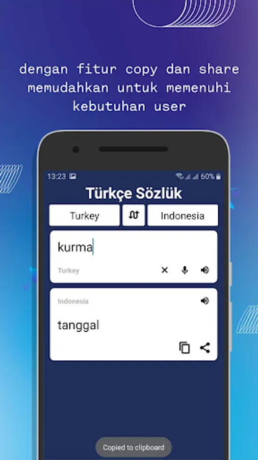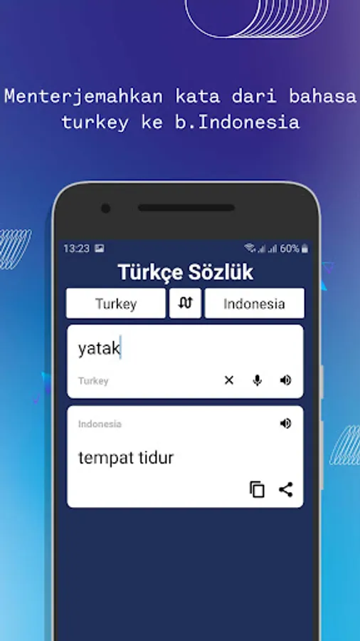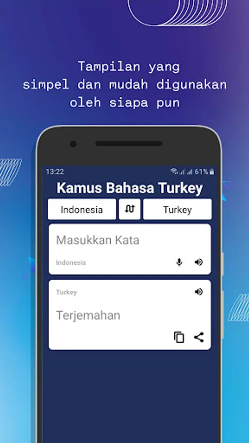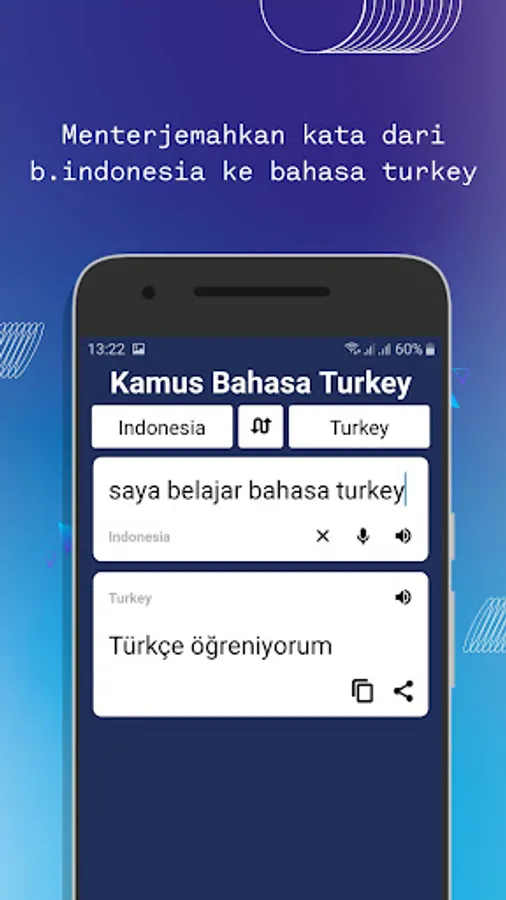 This application is a translator of words or sentences from Indonesian to Turkish or vice versa,