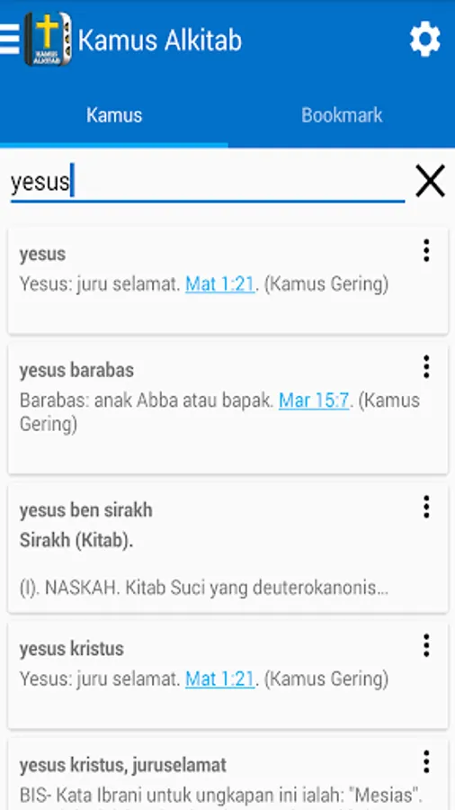 Kamus Alkitab berisi referensi kata-kata yang ada di Alkitab yang berguna bagi anda yang belajar Alkitab.