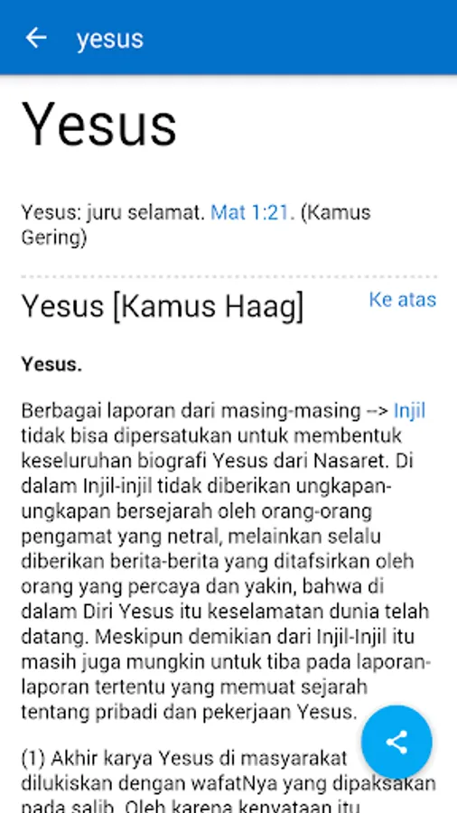 Kamus Alkitab ini dapat di akses secara offline dan tidak membutuhkan akses internet setelah data di unduh pertama kali.