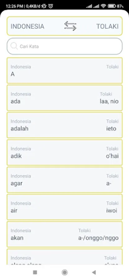 Vocabulary: The Tolaki dictionary application can help users expand their vocabulary by providing a list of new words in the Tolaki language.