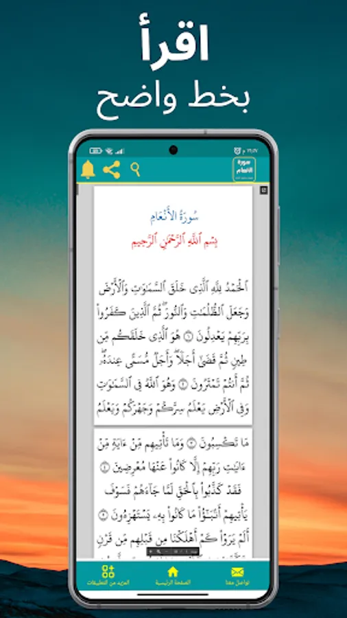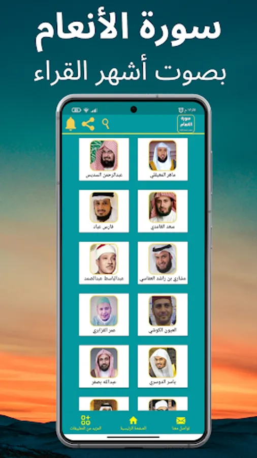It is the application of Surat Al-An'am complete with the voice of all the reciters: the application contains the complete Surah Al-An'am written and audible in the voice of all the reciters. You can now listen to Surat Al-An’am in full with the voice of all readers at any time you want, and you can search for the surah or Sheikh you want easily through the search tool at the top of the screen