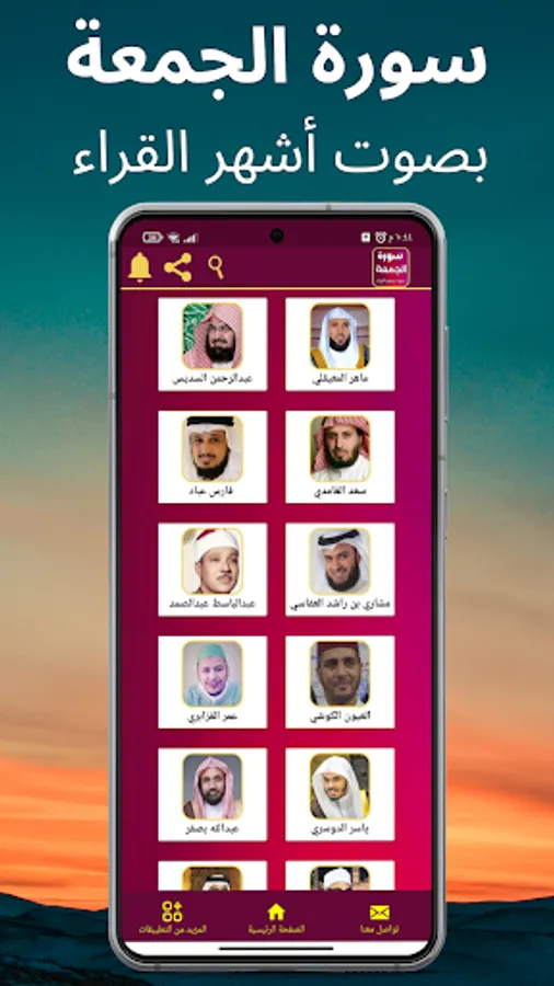 It is the application of Surat Al-Jumu’ah complete with the voice of all the reciters: the application contains the complete Surah Al-Jumu’ah written and audible in the voice of all the reciters. You can now listen to Surat Al-Friday in full with the voice of all readers at any time you want, and you can search for the surah or sheikh you want easily through the search tool at the top of the screen