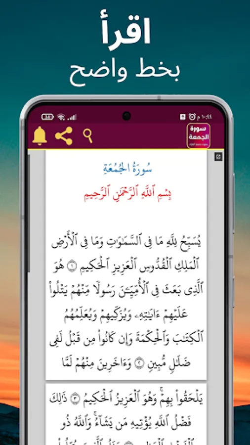 The application of Surat Al-Jumu’ah complete with the voice of all readers, reading and hearing is an audio and image application in which we present this surah written and audible