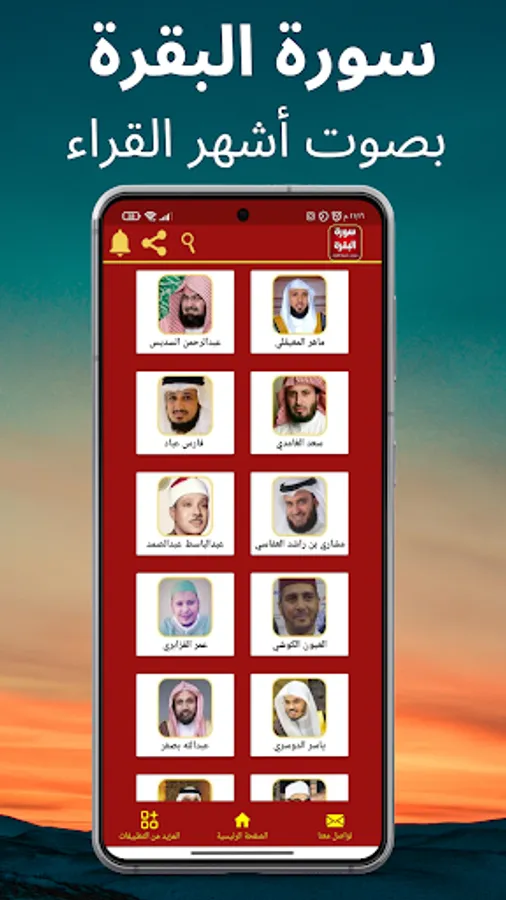 It is the application of Surat Al-Baqara complete with the voice of all the reciters: the application contains the complete Surah Al-Baqara written and audible in the voice of all the reciters. You can now listen to Surat Al-Baqara in full with the voice of all readers at any time you want, and you can search for the surah or Sheikh you want easily through the search tool at the top of the screen