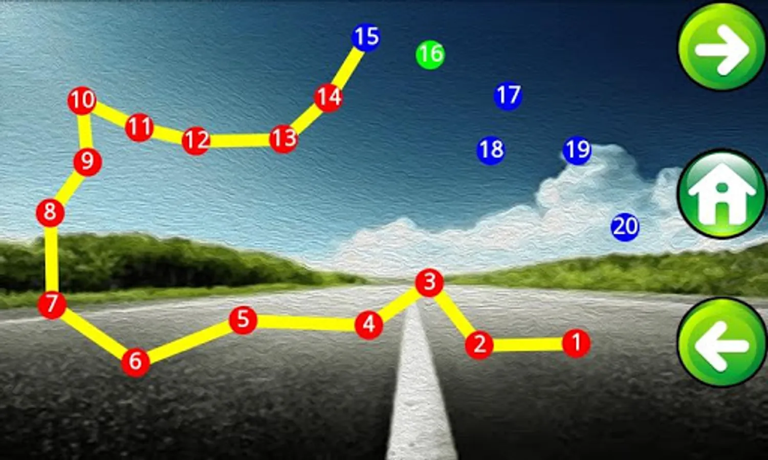 Game can be played in 3 modes below which can be set from setting option to indicate what kind of dots one want to trace.
