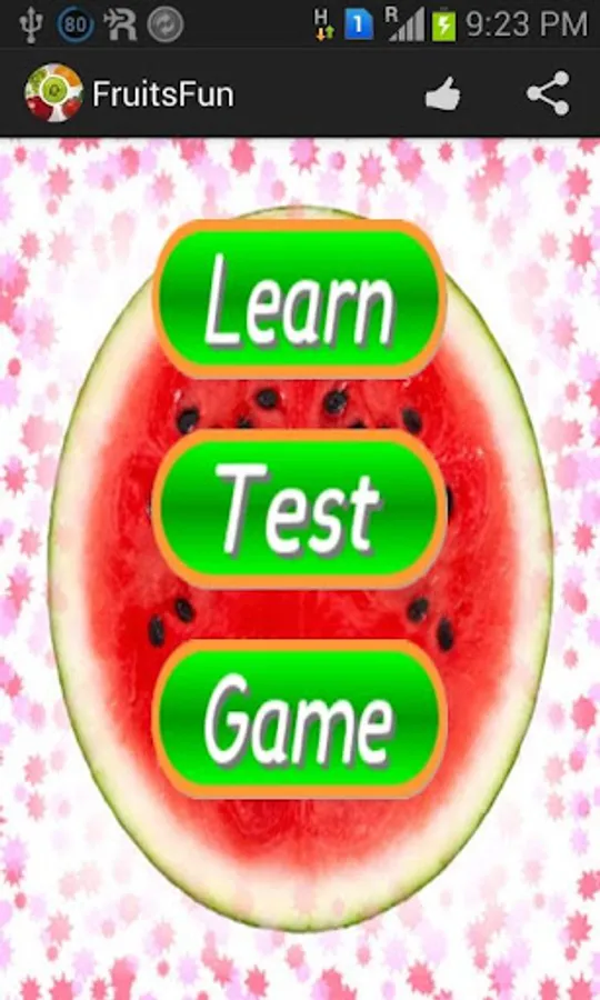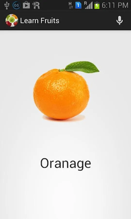1. Learn -> This section have list of all fruits which you can swipe and App will pronounce the fruit name.