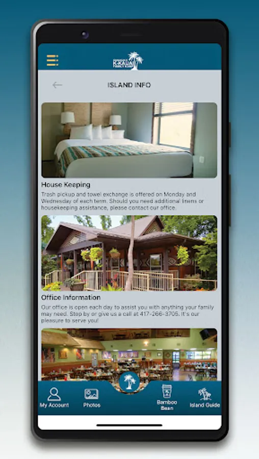 This app will help you keep track of all the "need-to-knows,” view daily photos, order morning coffee from the Bamboo Bean, view a map of “The Island,” and so much more!