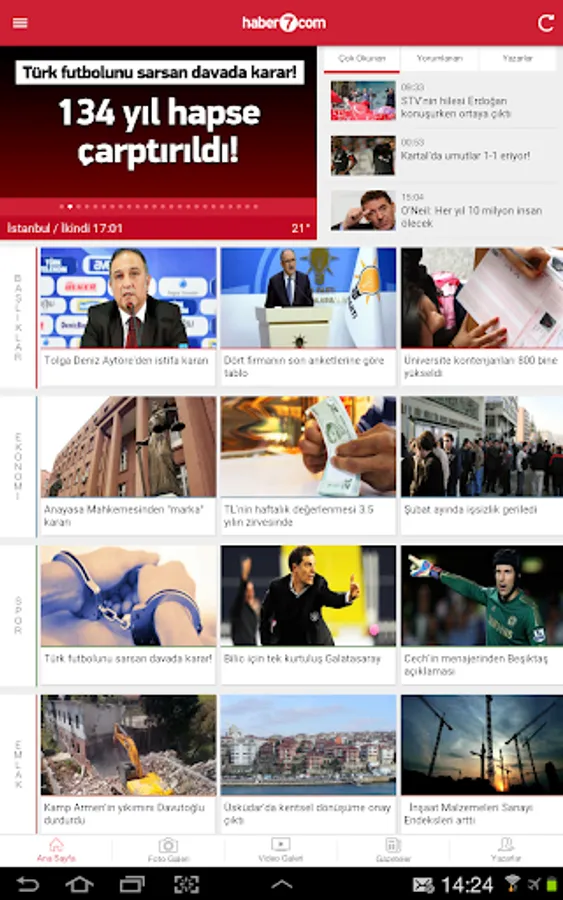 The latest news in more than 10 categories such as Agenda, Economy, Politics, Sports is always available! Follow Turkey's pulse with Haber 7!