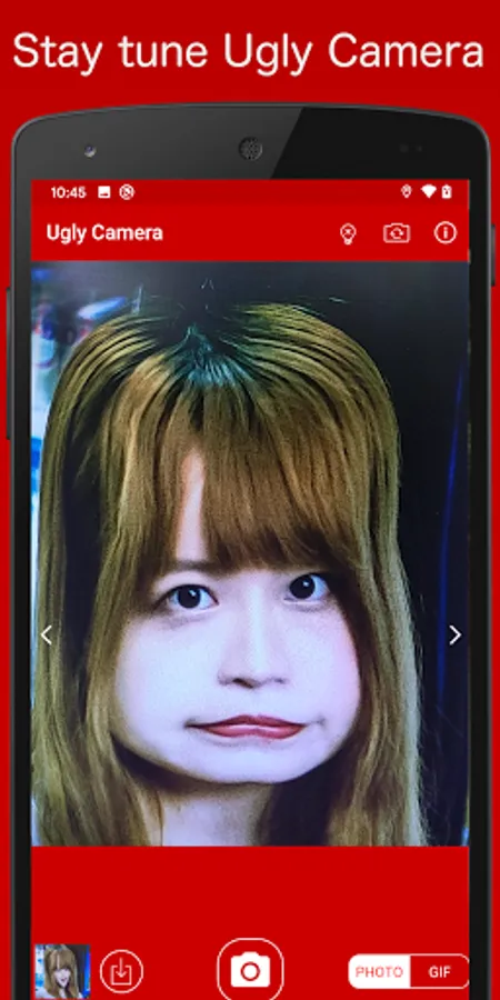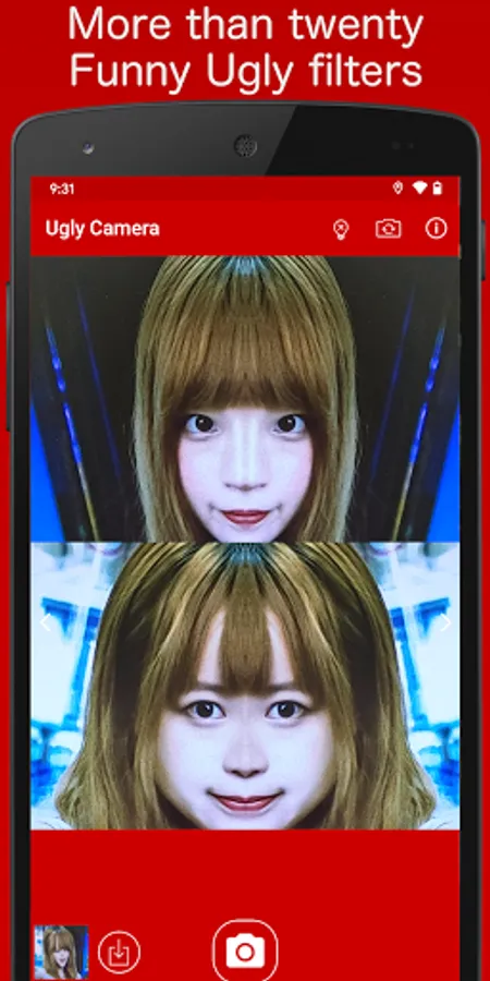 - Several effects that result in ugly funny faces; distort, duplicate and transform your face.
