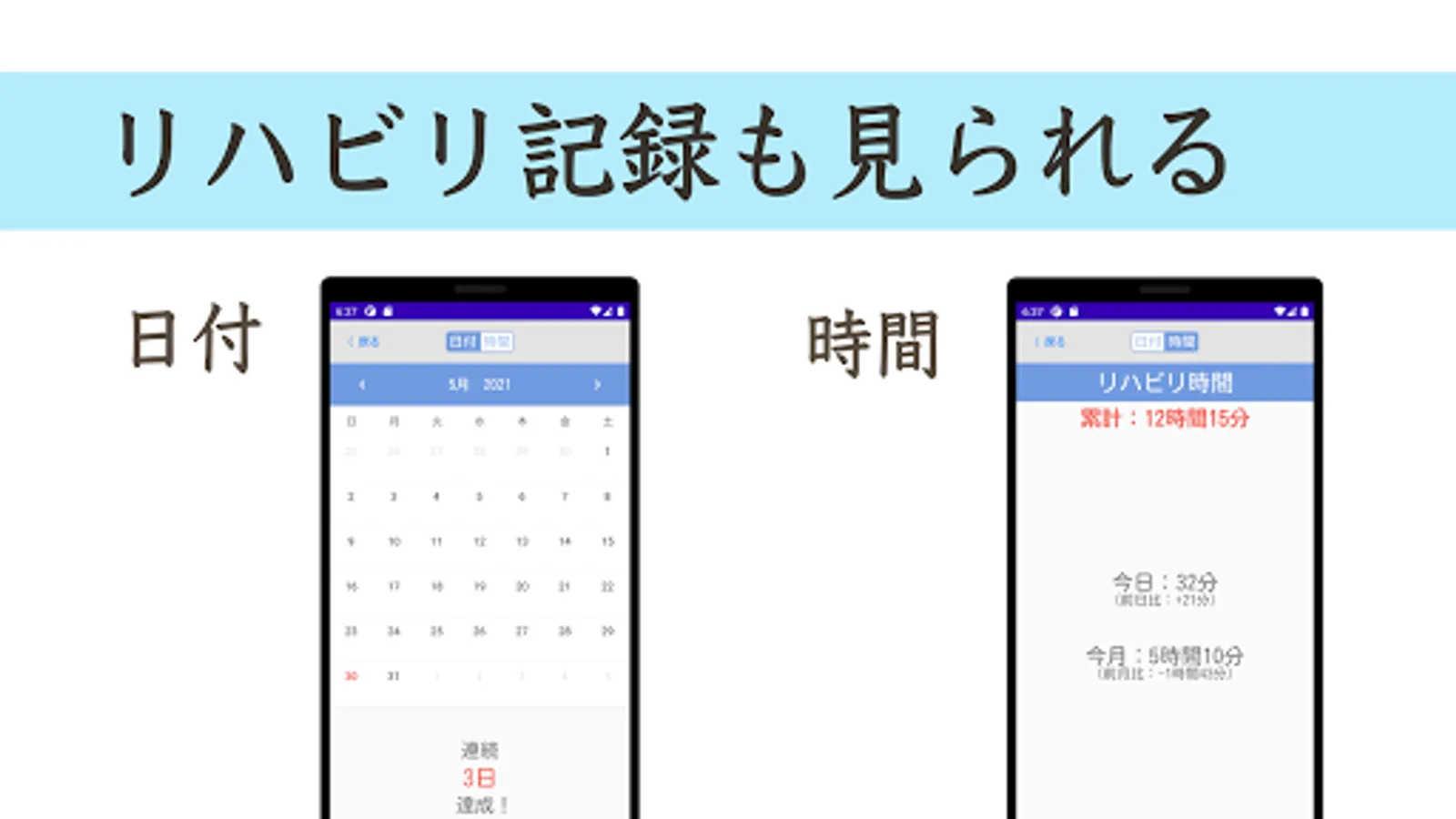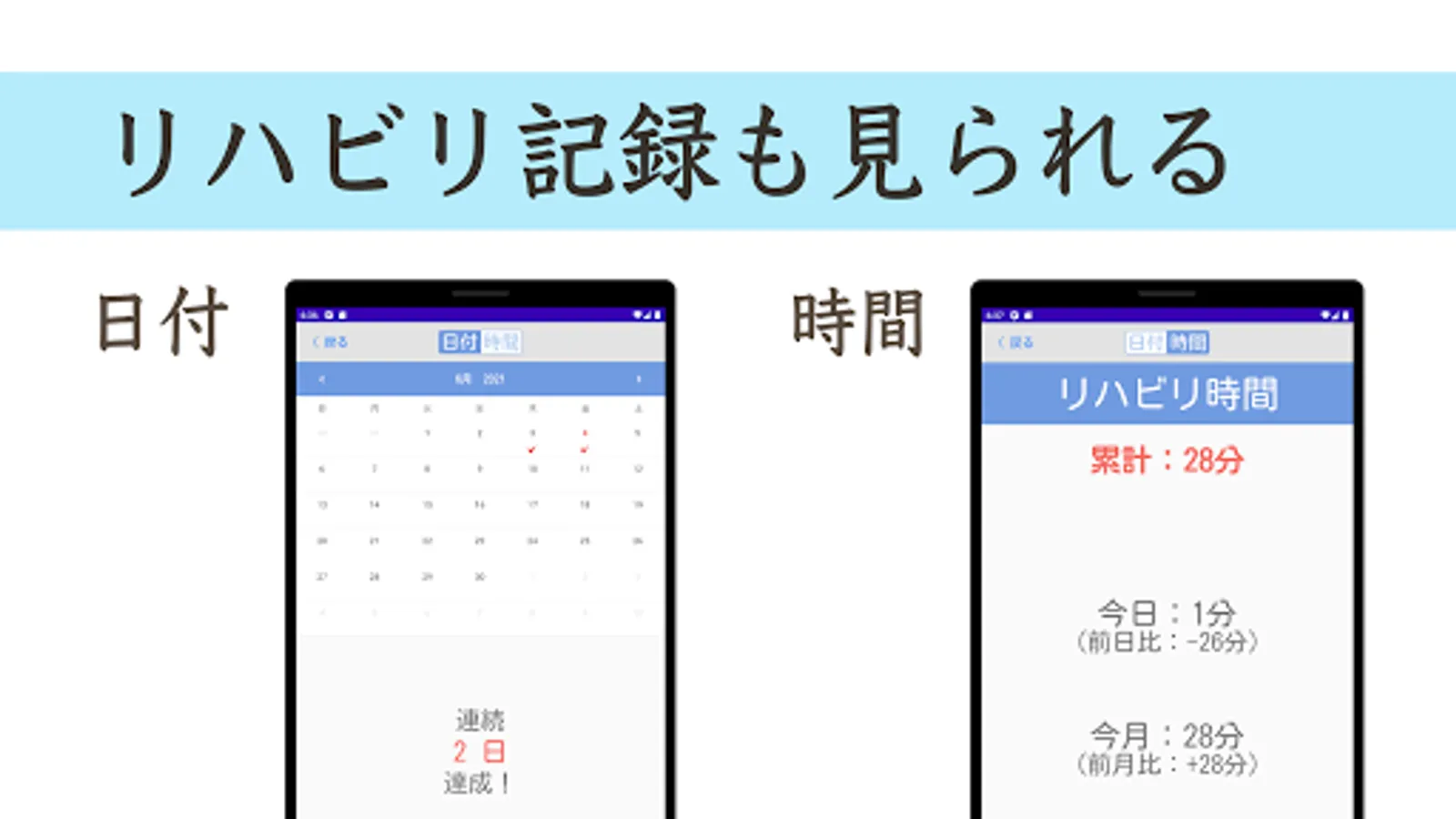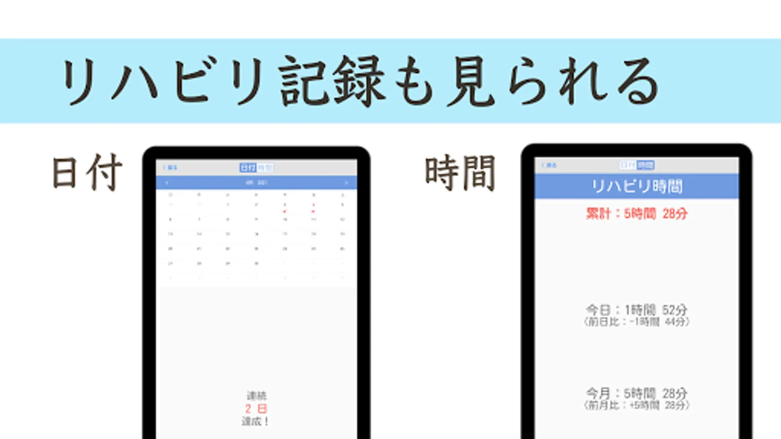・ You can also check the rehabilitation time from the previous day and the previous month.