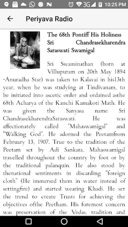 Kanchi Sankara is an application dedicated to spread the teachings of the Sri Kanchi Kamakoti Peetam and their acharyas.