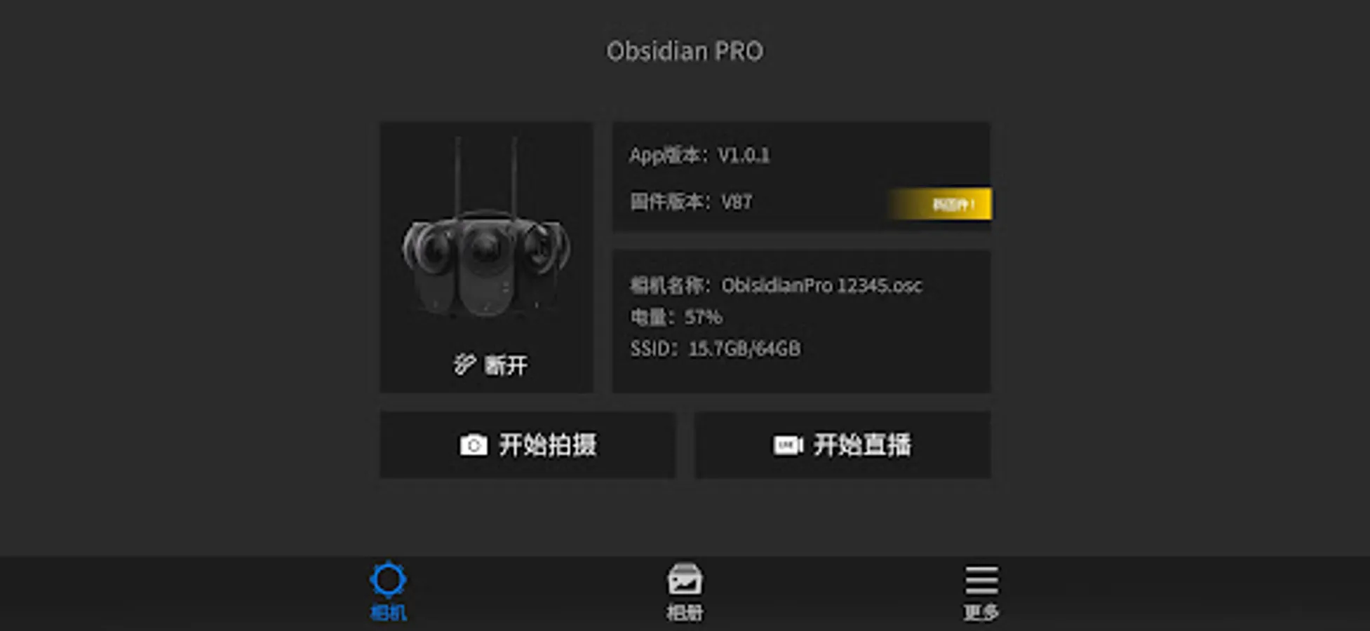 Using Obsidian Pro app, you can connect to and control your 12K 3D VR Camera, Kandao Obsidian Pro for efficient creation through WiFi. It supports real-time parameter adjustment, preview, playback, and firmware upgrade.