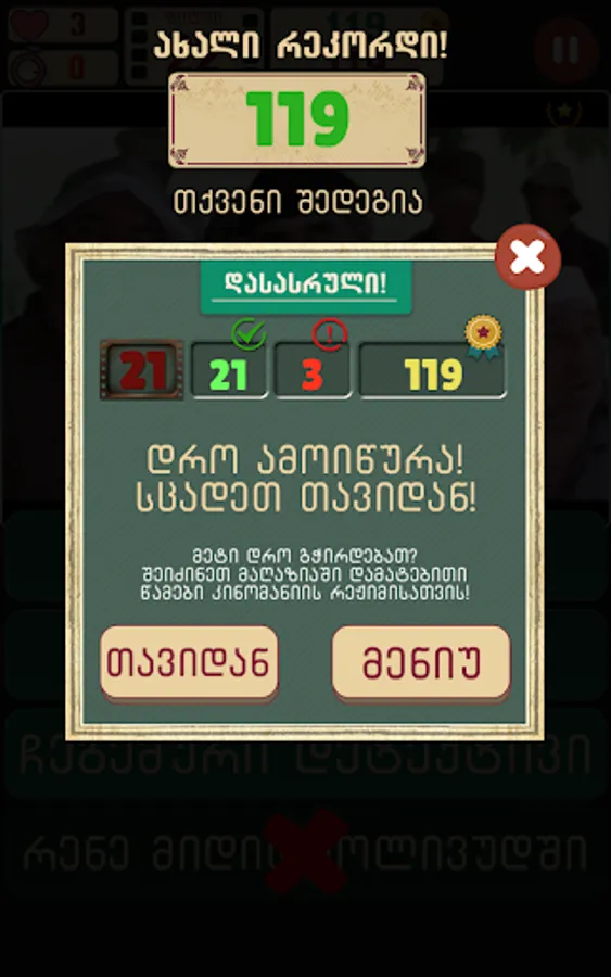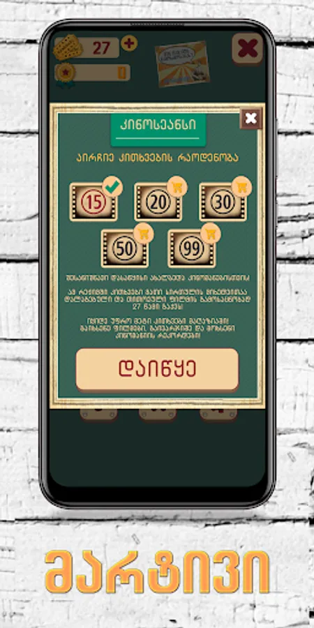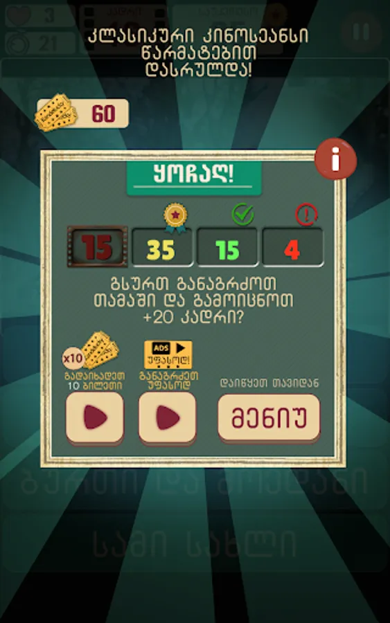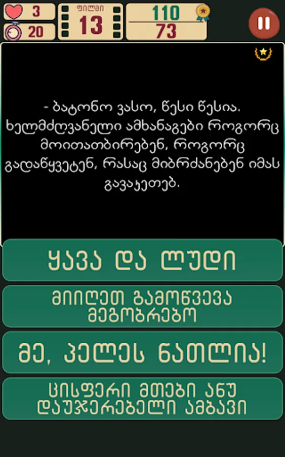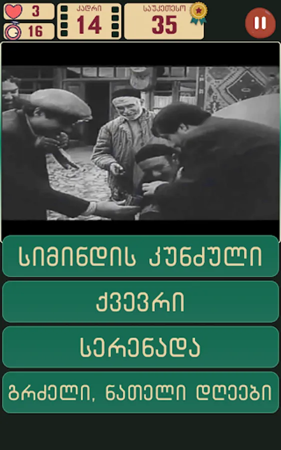 Guess the GEO movies is a challenging game that tests your Georgian movie knowledge skills.