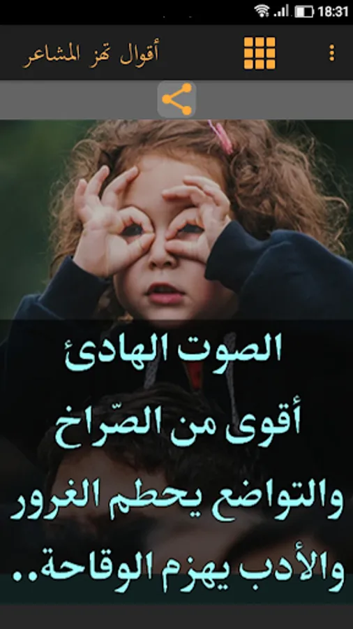 In our application sayings and wisdom in the image shaking feelings you will also find influential sayings and sayings of the wise men and sayings and wisdom and proverbs about life. Our application also enables you to easily and smoothly browse pictures and share them with your relatives and friends through social media and private messages. We offer you this application that will give you mental pleasure and help you understand life, friendship, love and the philosophy of human relations and will make your personality strong and mature. We are pleased to discover what our application includes in terms of judgment and influential words that inspire you and develop your outlook on life in general.