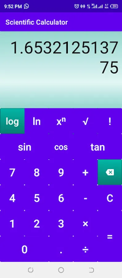 Scientific Calculator is the digital representation of a normal electronic calculator. This app supports you productive live where you can perform calculation faster on your phone. It features many functions such as logarithms, cosine, sine, tangent, factorial, square and square root and many more in addition to add, subtract, multiply and divide functions. Enjoy your productive live with this simple yet versatile app