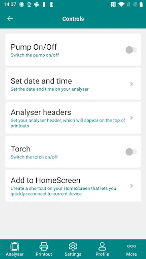 • Update/Sync Date & Time - easily update/sync your analyser each time you connect
