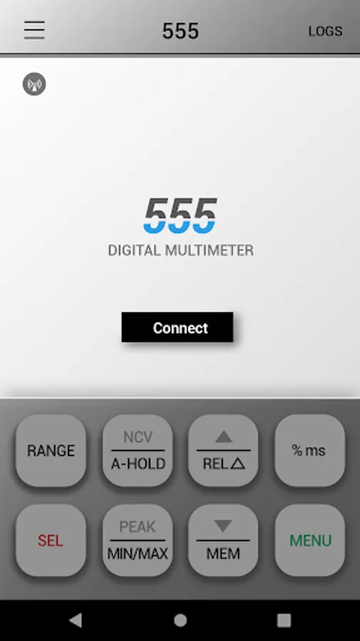 “KANE555” transmits the data via Bluetooth. Currently, this App is able to use on a handheld type digital multimeter KANE555.