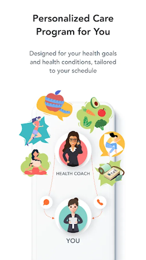 The app matches you with a dedicated health coach remotely. Your health coach designs a personalized care plan for your health goals. Through regular sessions with your coach, you are supported every step of the way to make positive changes towards a better you.