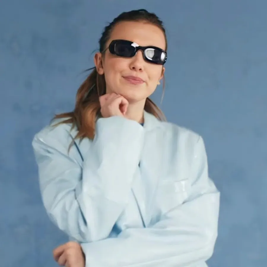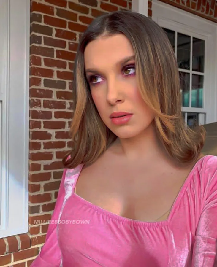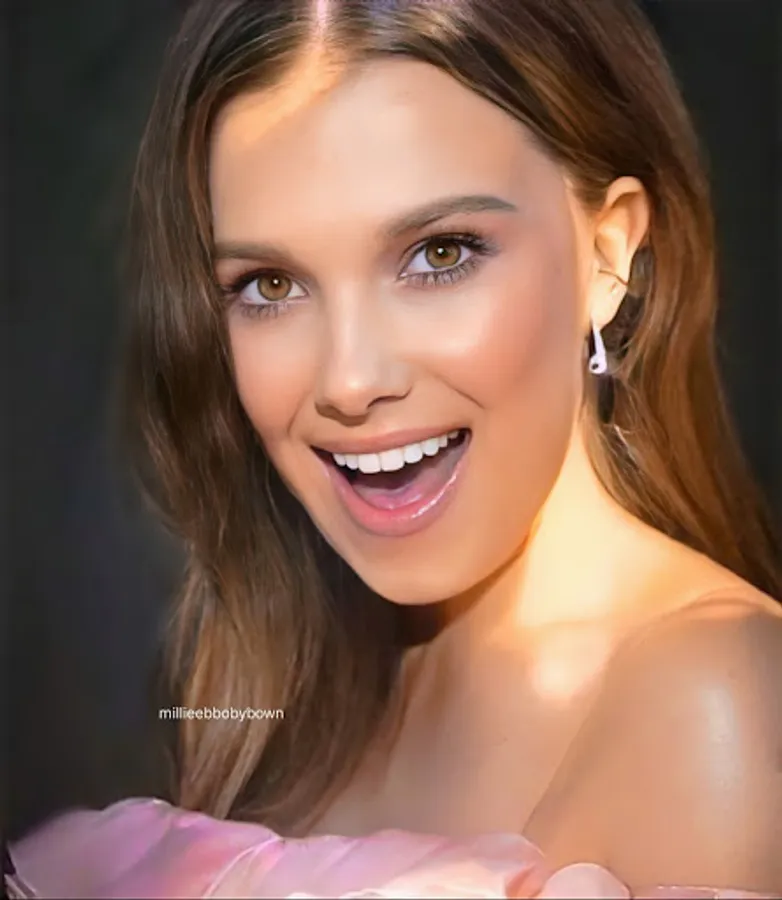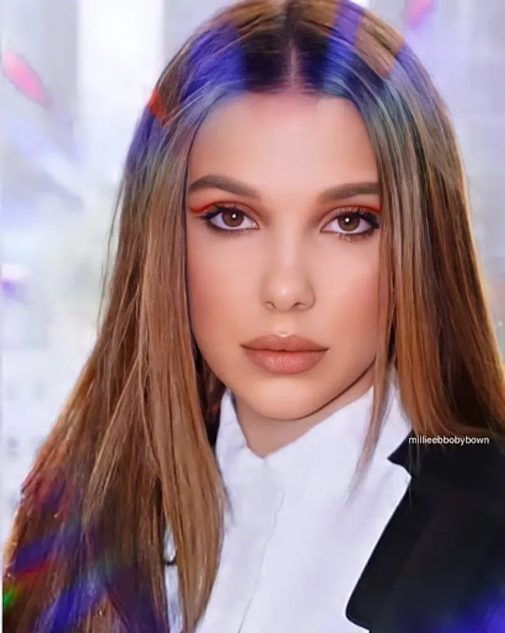The Millie Bobby Brown picture in the middle of the background is displayed in . That's a cool picture