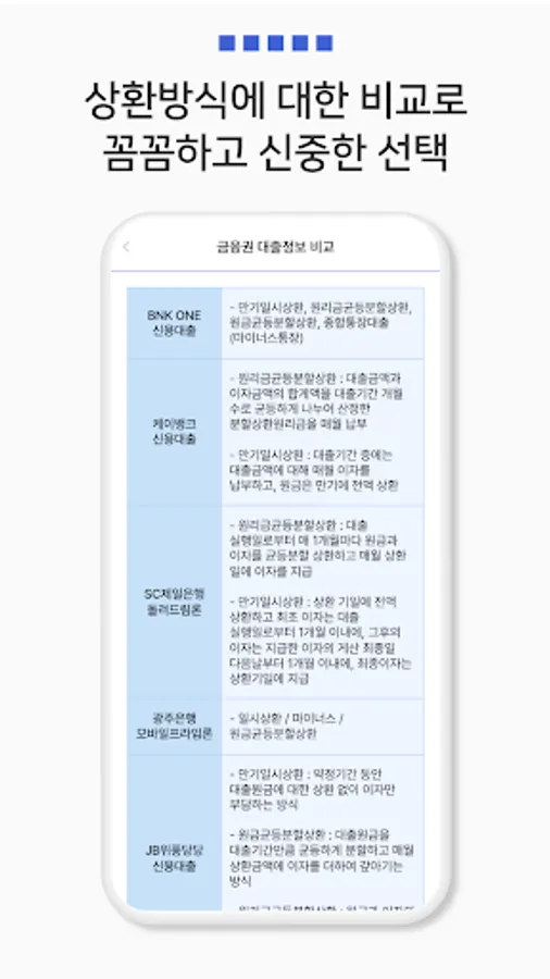 From Busan Bank to Jeonbuk Bank, 5 representative non-face-to-face loan products are organized in an easy-to-understand way and compared in detail, such as limit, interest rate, period, and repayment method.