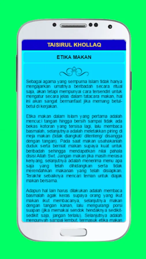 This study is a summary of the study of morality practically very basic, a clue that is needed by a Muslim, especially the younger generation who early on had to be taught the values of Muslim beliefs and morality of Islam, the development of modern education as if no room will be their study morality during this makes frozen in stagnation.