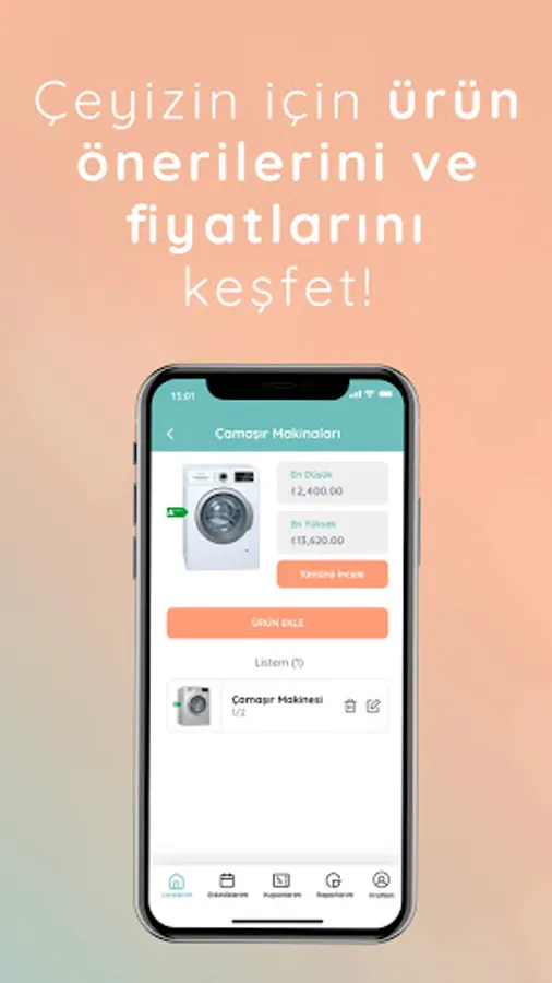 You can list hundreds of product suggestions from bathroom to home textile, lighting to furniture, white goods to kitchen utensils through the My Dowry List application. You can compare the prices of the products you like in different brands, and add the ones that best fit your budget to your personal list.