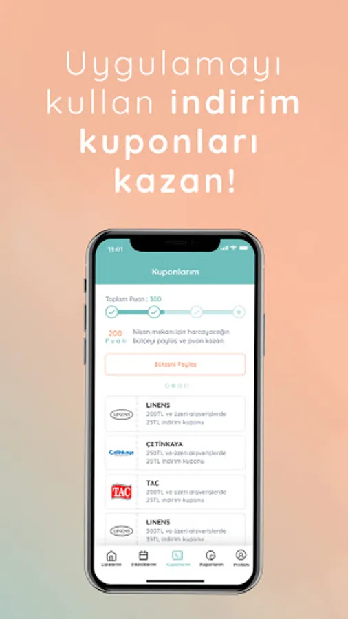 - Discount coupon up to 5,000 TL, which accumulates as you use the application,
