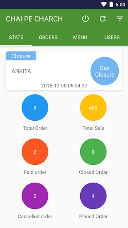At the end of the day manager can perform the Day Closure operation by just clicking a single button.