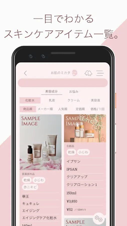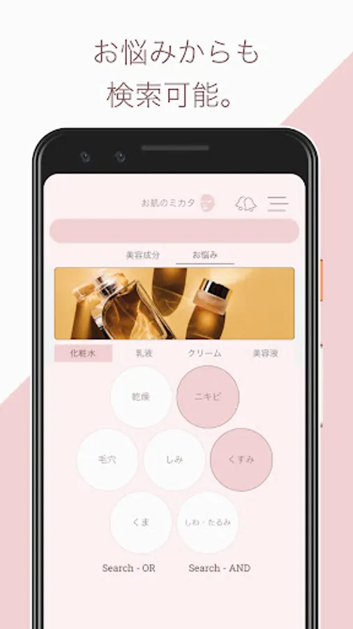 This app is the best app that allows you to search for skin care items from "beauty ingredients" !! Currently, it supports "toner, milky lotion, cream, beauty essence".