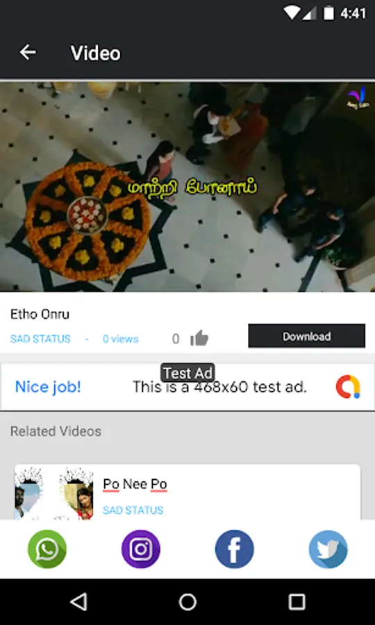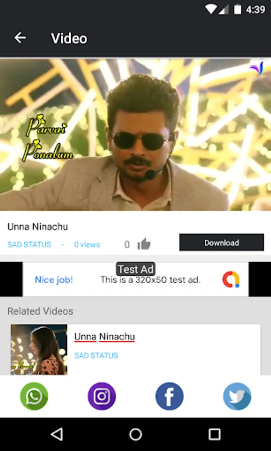 In this application i have add the list of Tamil Sad videos like love failure boys and girls, feeling depressed, feeling lonely and more categories. You can download the videos and share from the social networking websites.