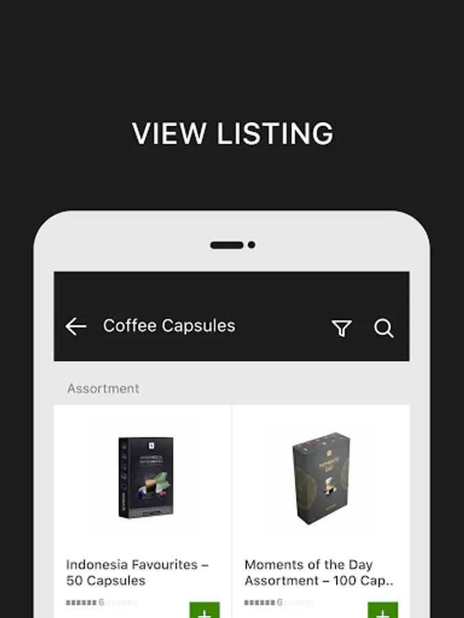 The Nespresso app allows to buy coffee capsules, machines and accessories on the go or at home on your phone.