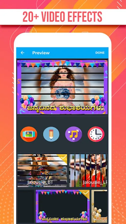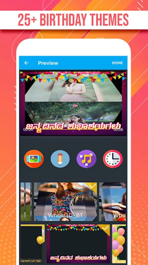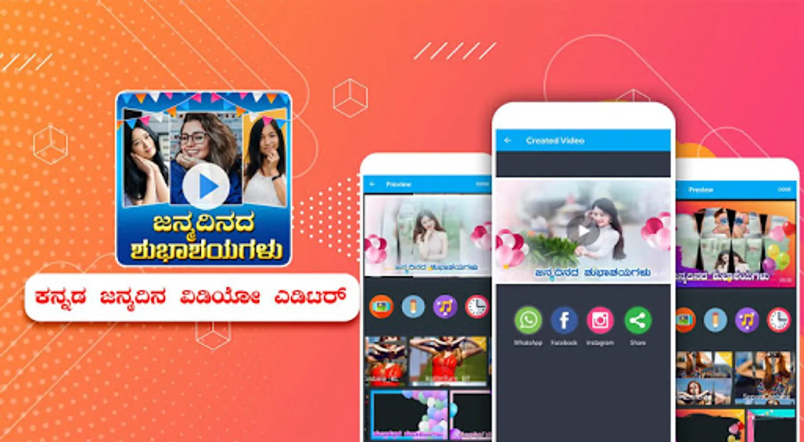 with this application you can create beautiful Kannada Happy Birthday Video Wishes and Greetings with custom Music, Wish your Relates or Friends with this app.