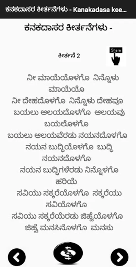 The use of the words of the Kannadasas is a collection of words, and it is here that the entire collection of Kandadasas is given with literature. Shree Kanaka Dasara of Udupi is famous for singing Kannada songs in the house of Karnataka daily. This Karnaka Dasana Android App is designed to be useful for those who are interested in it and to use it for the learners.