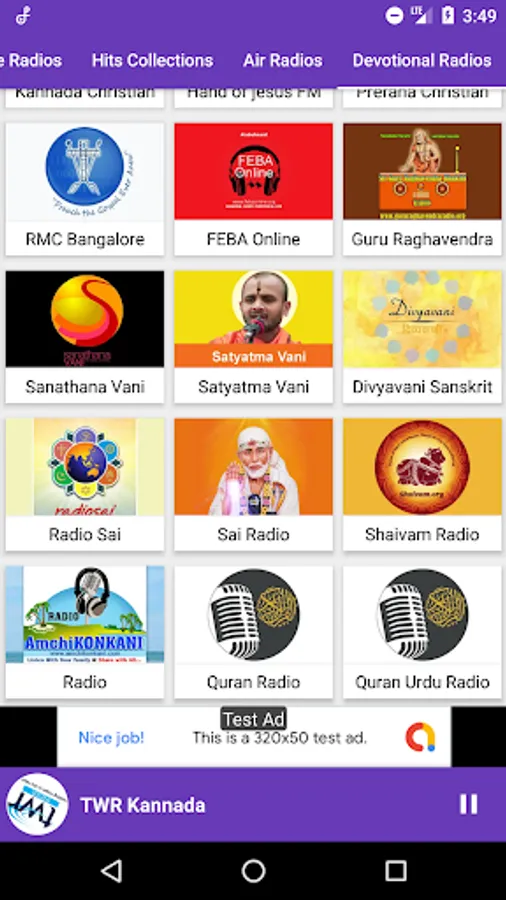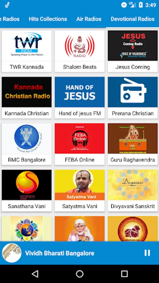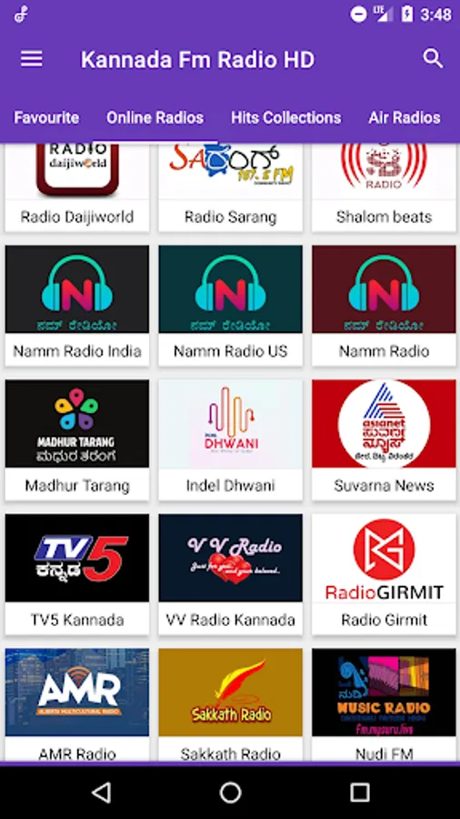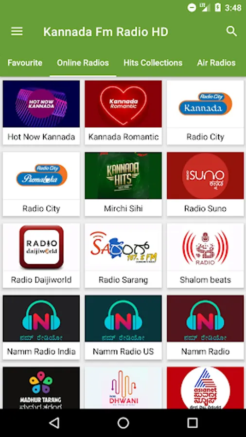 Mirchi Sihi Kannada, Radio City Kannada, Radio City Premaloka, Radio Suno Kannada, Radio Daijiworld, Radio Sarang, Shalom beats, Kannada Romantic, Hot Now Kannada, Namm Radio India, Namm Radio US, Namm Radio Gulf, Namm Radio Europe, Madhur Tarang, Indel Dhwani, Suvarna News, TV9 Kannada, VV Radio Kannada, Radio Girmit, AMR Radio Kannada, Sakkath Radio, Nudi FM, DK Radio, BEC Dhwani 90.4, Radio Panchajanya, Kalike Dhwani 90.4, JSS Radio Mysuru, Nammur Banuli 90.8 FM, BCU Radio, Radio NITTE, Namma Naadi 90.4 FM, Jana Dhwani 90.8 FM, Radio Ninada 90.4 FM, Namma Dhwani, KLE Venudhwani 90.4 FM, Sarathi Jhalak, Rajesh Krishnar Radio, TWR Kannada, Shalom Beats Radio, Jesus Coming, Kannada Christian radio, Hand of jesus FM, Prerana Christian Radio, RMC Bangalore, FEBA Online, Guru Raghavendra Radio, Sanathana Vani, Satyatma Vani, Divyavani Sanskrit Radio, Radio Sai, Sai Radio, Shaivam Radio, Radio AmchiKONKANI, Quran Radio, Quran Urdu Radio,