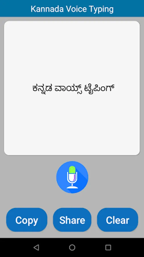 clink on mic icon in Voice Typing screen and It will automatically generates text for your speech. You can copy,share your Kannada text easily. Kannada Voice Typing is a cool feature to type Kannada Text fast.