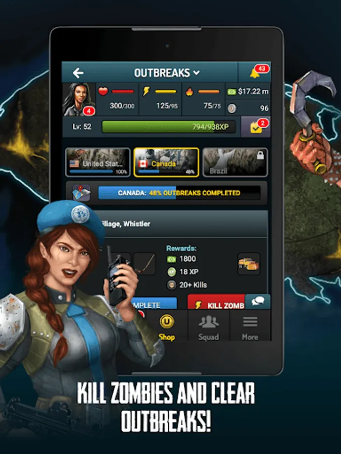 ▶ Use a powerful arsenal to annihilate global zombie outbreaks.
