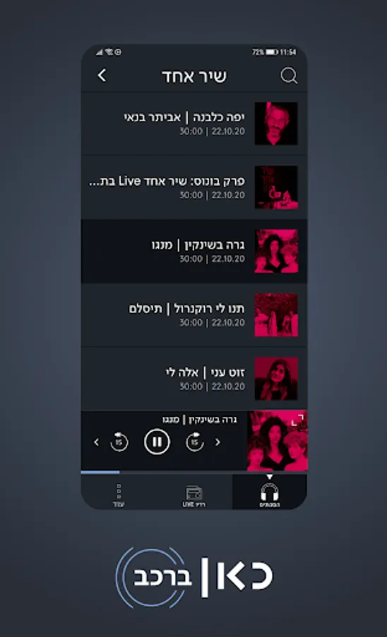 Here's audio app - Israeli Broadcasting Corporation: The app offers a variety of here's podcasts and live broadcasts of favorite radio stations. The app is regularly updated with new chapters of familiar snippets, and the new snippets here