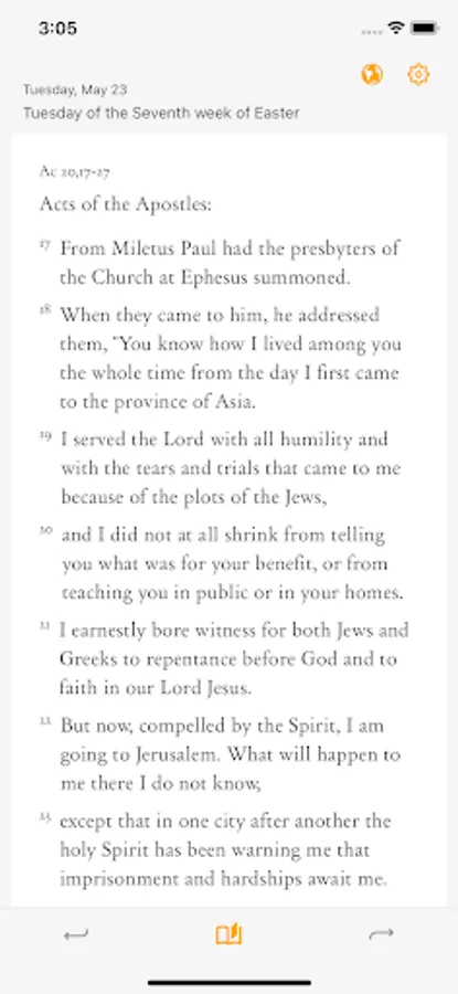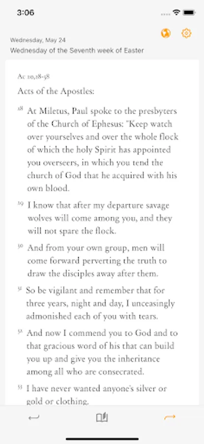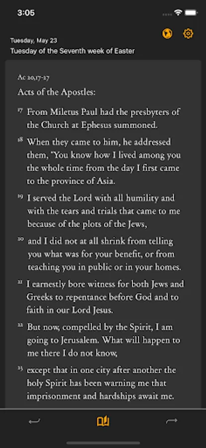 Daily Gospel readings from the Bible according to the Catholic church liturgical calendar. Each day the corresponding scripture readings are shown so you can follow along the same page (pun intended) as the rest of the church.