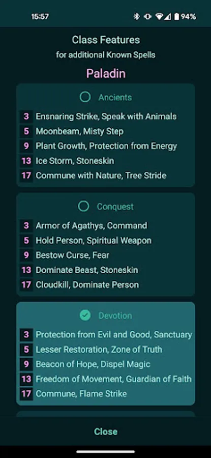 Automatically adds spells from special class features like Druid Circles, Cleric Domains, Paladin Oaths, Warlock Patron, etc.