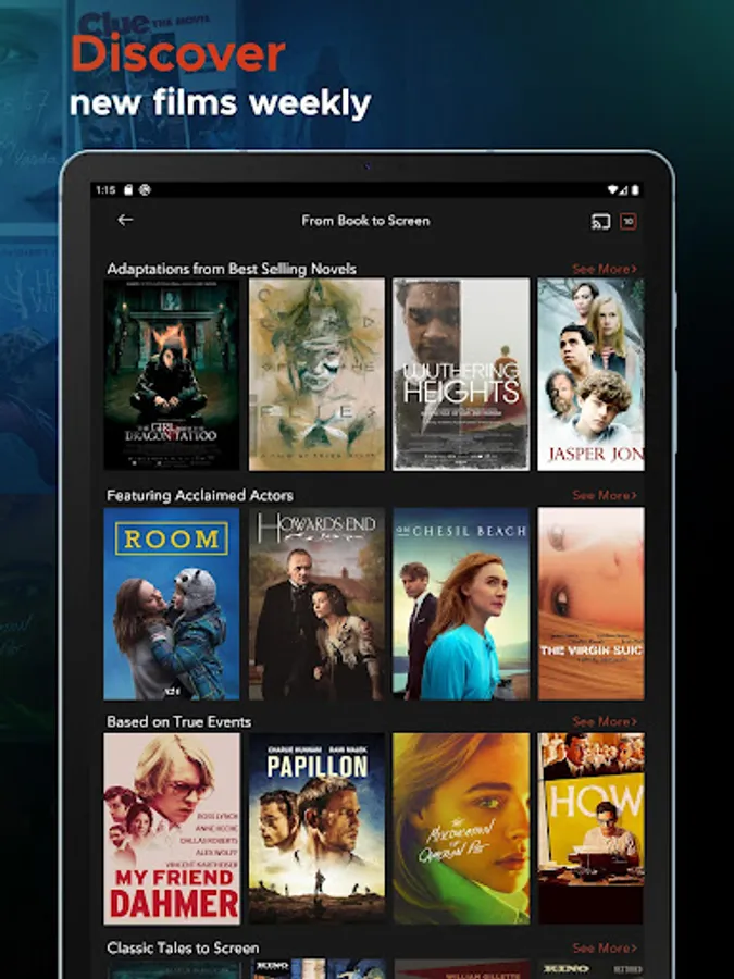 Stream thousands of films for free without ads through your library.