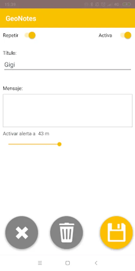 Define a radius of action and when you are inside, the notes will be activated as notifications on your mobile.