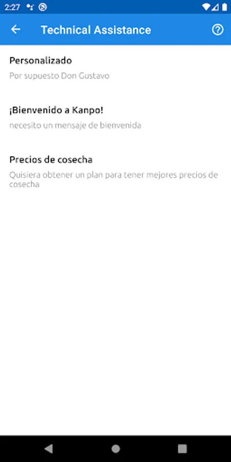 Aplicación para prestación de servicios de asistencia al agro, ligada a la aplicación para agricultores Kanpo.