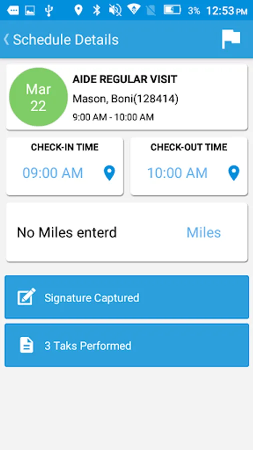 1. Allow Clinicians to do Check-in,Check-out and document miles, Client's Signature.