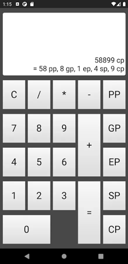 This program makes managing your money in tabletop roleplaying games so easy. Enter the amount of coins you have and convert it up. Divide coins evenly among party members. Performs basic calculations in platinum, gold, electrum, sliver, and copper.