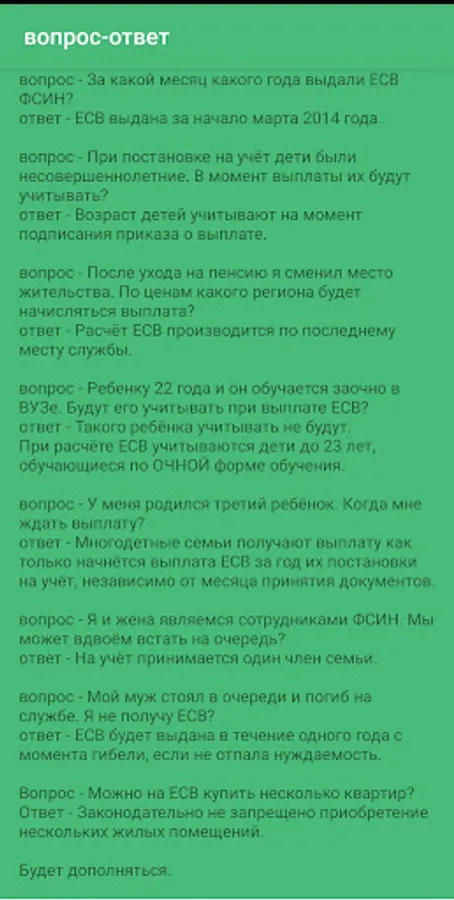 The application contains a complete list of regulations governing registration, calculation of the amount and the rules for calculating a one-time social payment for the purchase of housing for employees of the Federal Penitentiary Service.