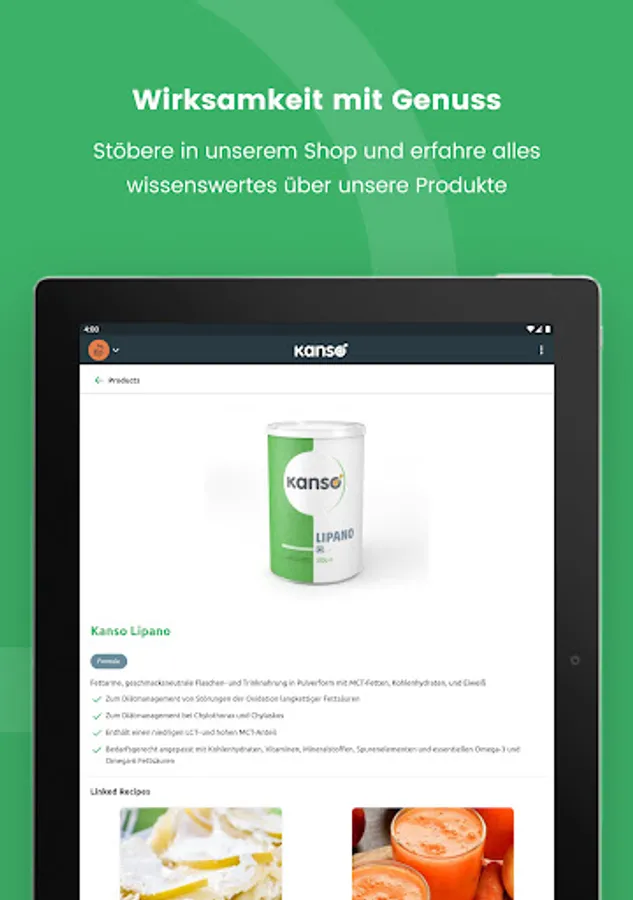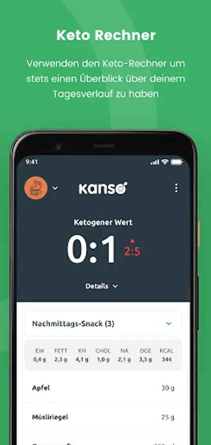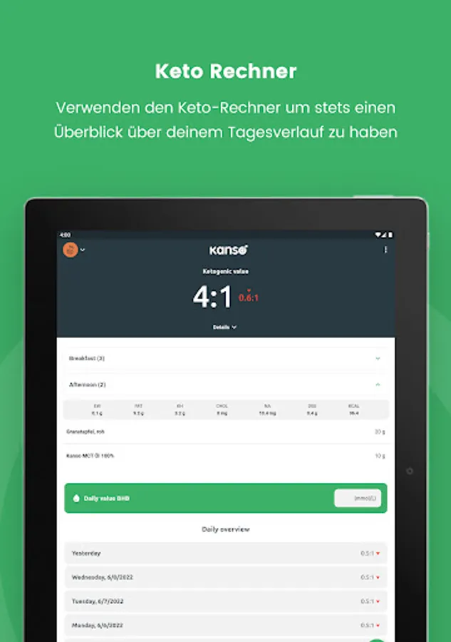 Find useful information in the app and calculate your ketogenic daily value or the MAD value with the integrated calculator - individually and securely on your smartphone.